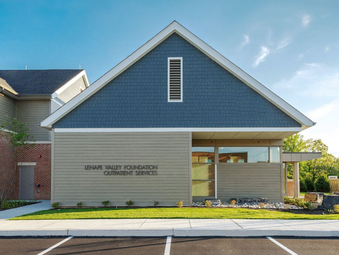 To address the escalating demand for mental health services, the Lenape Valley Foundation, a Doylestown-based mental health non-profit organization, sought to build a new branch facility on the grounds of the Lower Bucks Hospital in Bristol, PA. The LVF Crisis Center building houses three clusters of behavioral health activity; a Crisis Residential program; a Crisis Walk-in and Call Center program; and an Outpatient Services program. The program and design solution was a completely innovative prototype that sets the standard for behavioral health residential programs in Bucks County. The LVF Crisis Center was rebranded as "The Lodge", borrowing some of the architectural vocabulary in order to convey that this is a unique and innovative place where one can find momentary solace and refuge in a sometimes overwhelming and distressing world.